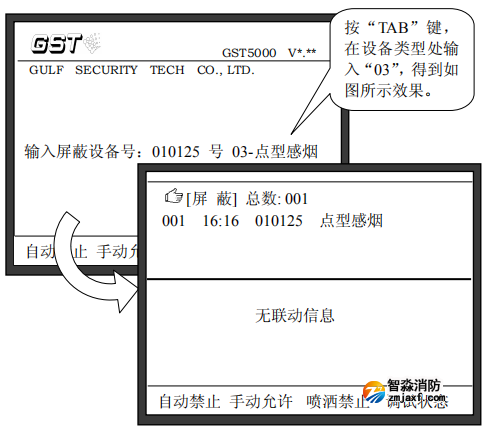 假設需要屏蔽的現(xiàn)場設備用戶編碼為010125的點型感煙探測器,其屏蔽操作應按照如下步驟進行: